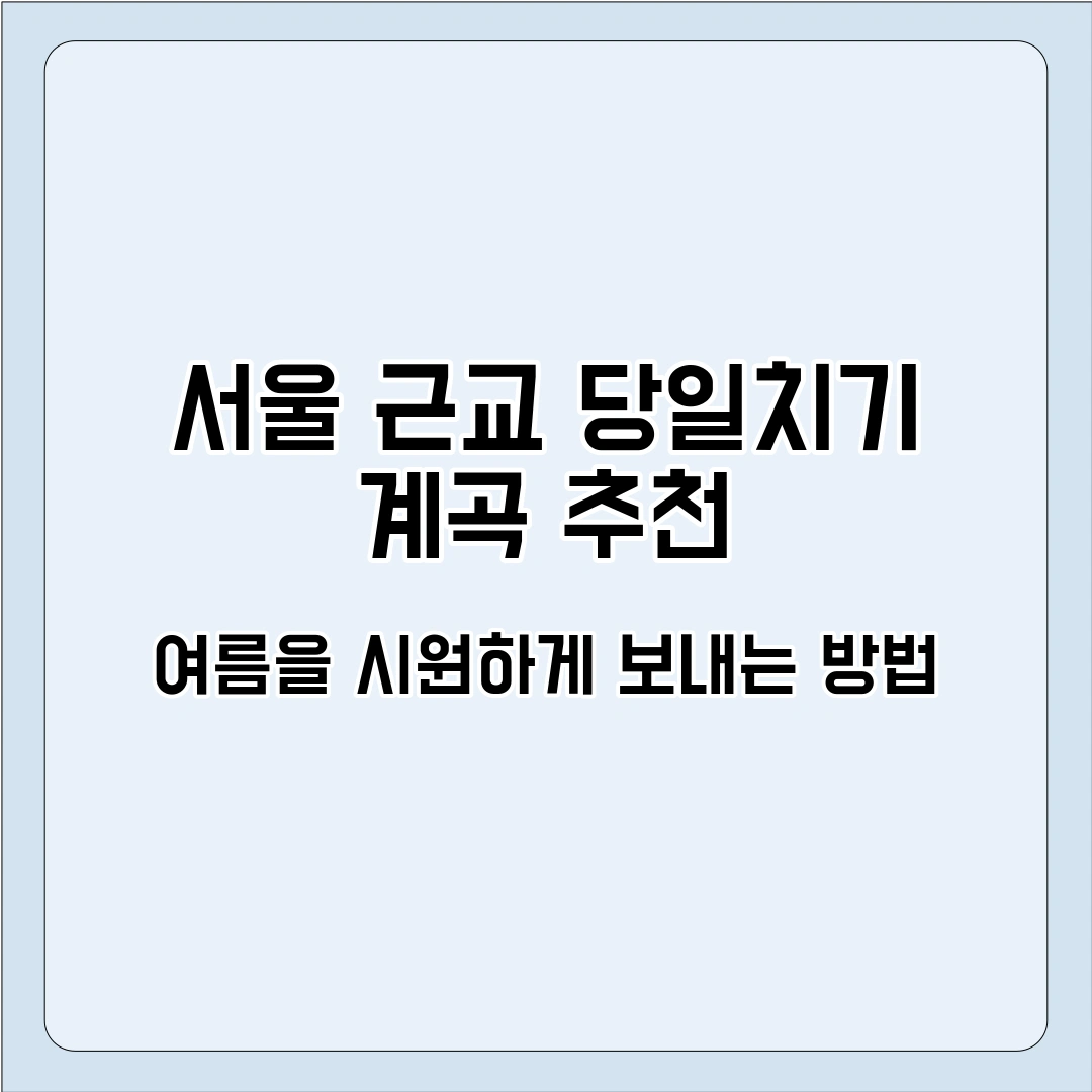 무더운 여름, 도심의 열기를 피해 시원한 자연을 찾는 분들이 많습니다. 특히 서울 인근에서 당일치기로 다녀올 수 있는 계곡은 가족, 연인, 친구들과 함께 즐기기에 안성맞춤입니다. 이번 포스팅에서는 서울 근교에서 당일치기로 방문할 수 있는 계곡 추천을 통해 더위를 식히는 방법을 소개해드리겠습니다.