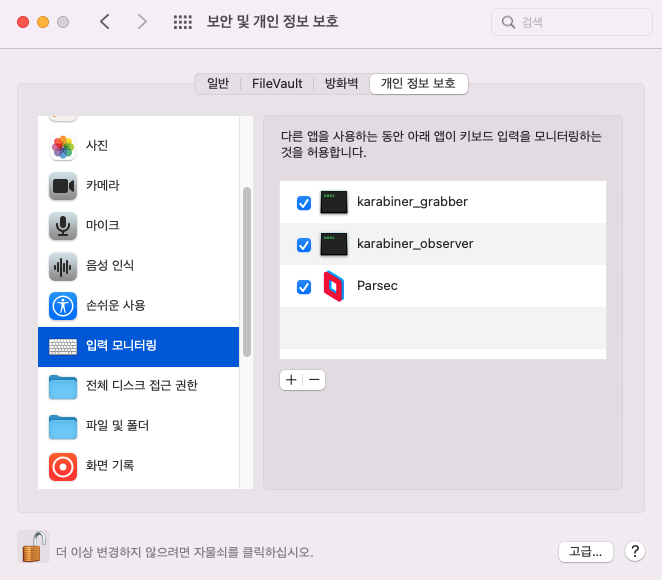 ✅ Karabiner 정상 작동을 위한 입력 권한 허용