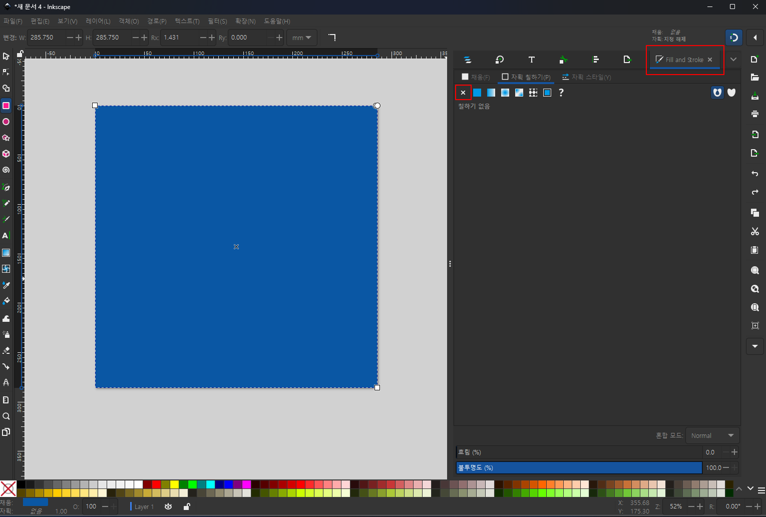 - 상단 메뉴 → 객체 → 채움 및 자획