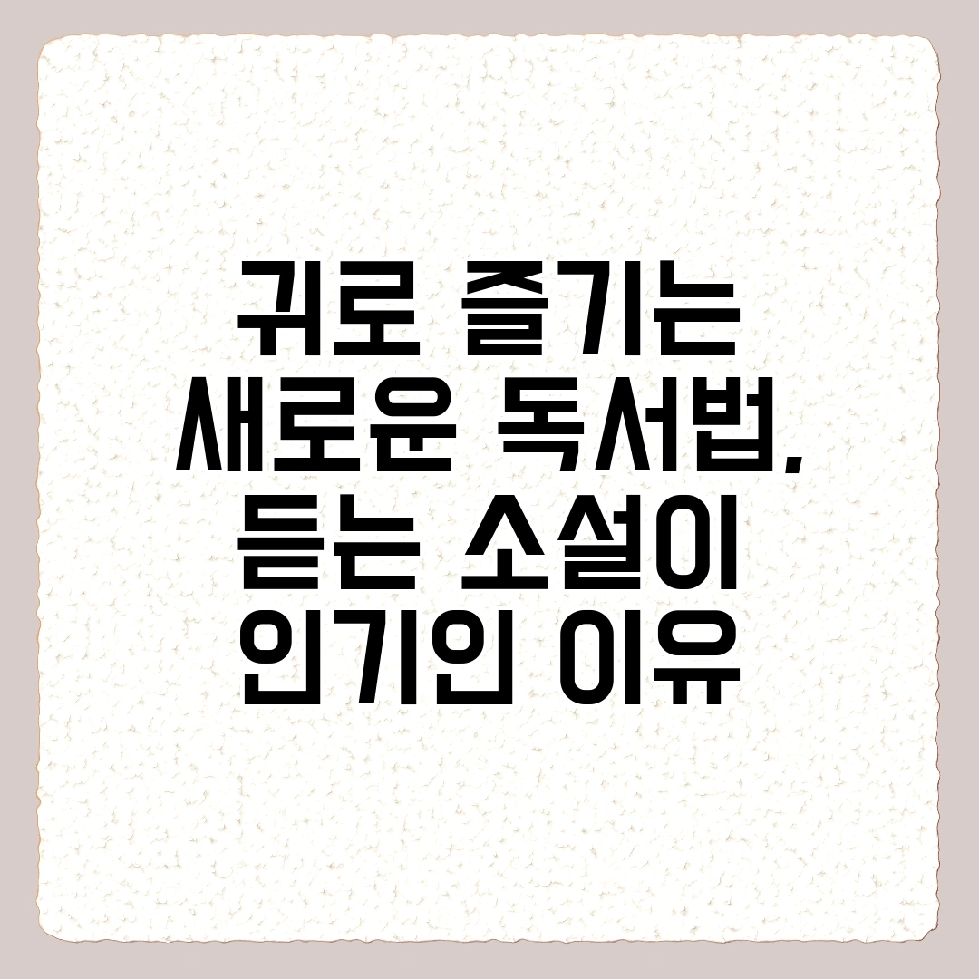 듣는 소설은 ‘핸즈프리’ 독서라는 점에서 현대인에게 최적화된 콘텐츠입니다. 출퇴근길 지하철, 운동할 때, 설거지나 청소 중에도 소설 한 권을 감상할 수 있습니다. 특히 눈이 피로할 때나 책을 읽기 어려운 상황에서 듣는 콘텐츠는 큰 대안이 됩니다.