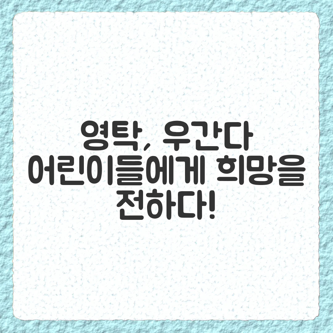 따뜻한 소식으로 여러분의 마음을 채워줄 정보 요정입니다. 오늘은 '니가 왜 거기서 나와'로 전국민적인 사랑을 받으며 스타덤에 오른 가수 영탁 씨의 훈훈한 소식을 전해드리려 합니다. 영탁 씨가 아프리카 우간다 어린이들을 위해 특별한 여정을 떠났다고 하는데요. 그의 선한 영향력은 과연 어떤 모습일까요? 함께 자세히 알아보시죠!