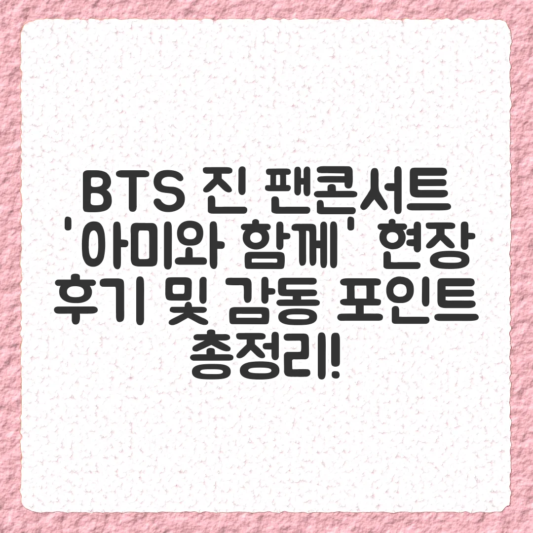 이 포스팅이 진 팬콘서트의 감동을 공유하고, 앞으로의 활동을 기대하는 데 도움이 되기를 바랍니다. 진에게 보내는 응원 메시지나 콘서트에 대한 감상은 댓글로 자유롭게 남겨주세요!