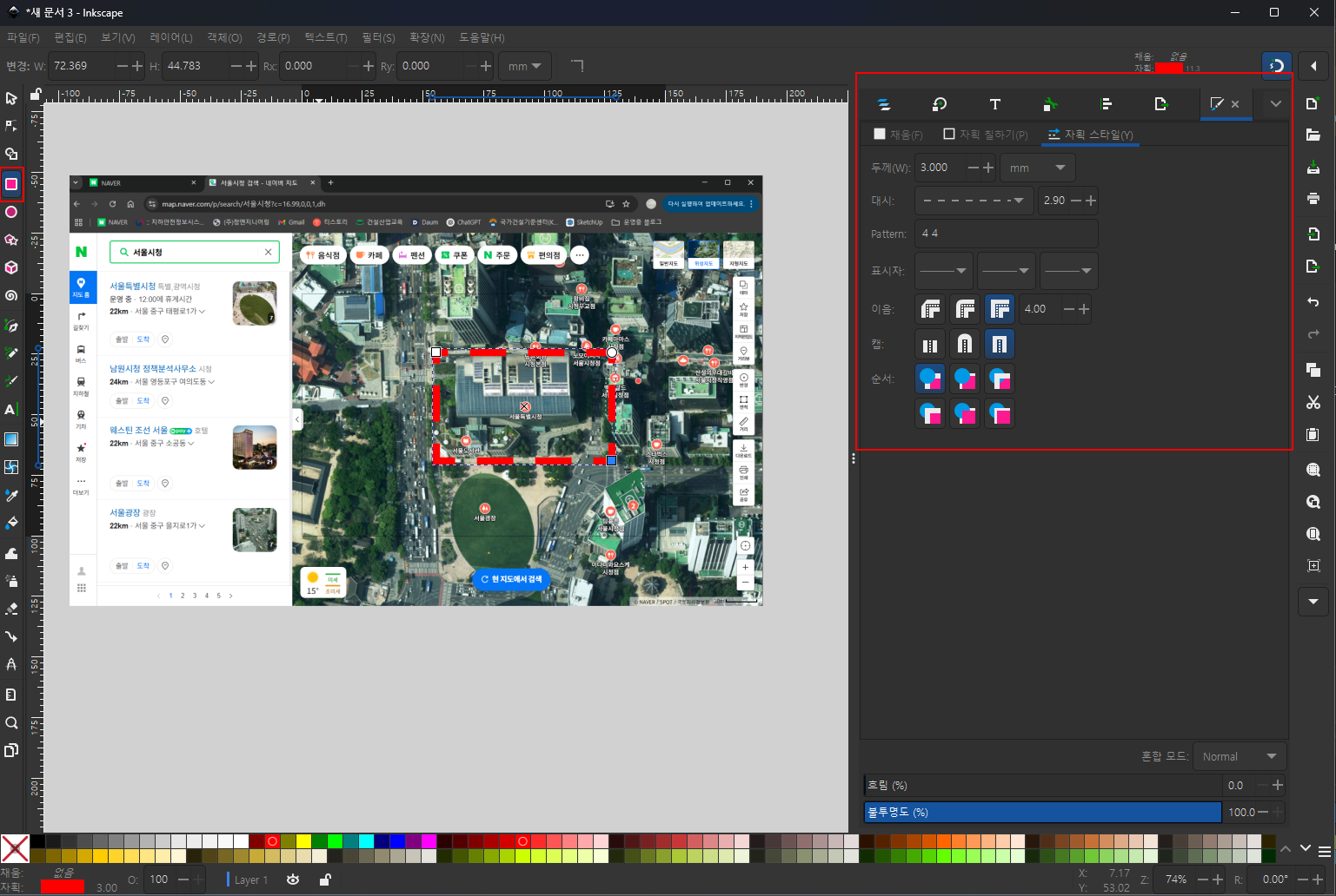 보고서에 삽도 하나 넣는다고 Illustrator를 켜기엔 부담스럽고, 그렇다고 PPT에서 도형을 그리자니 정밀함이 부족하죠. 이번 글에서는 무료 벡터툴 Inkscape를 활용해 실전 과업위치도를 만드는 과정을 단계별로 따라가 보겠습니다.