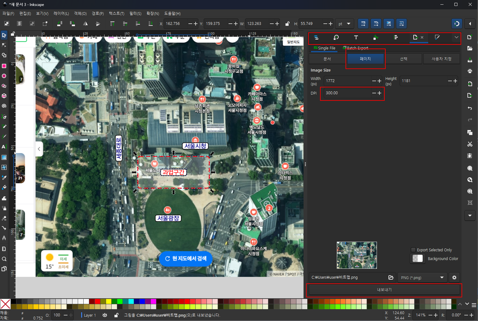 작업이 끝났다면 고해상도 PNG로 저장해 한글이나 PPT에 삽입합니다.